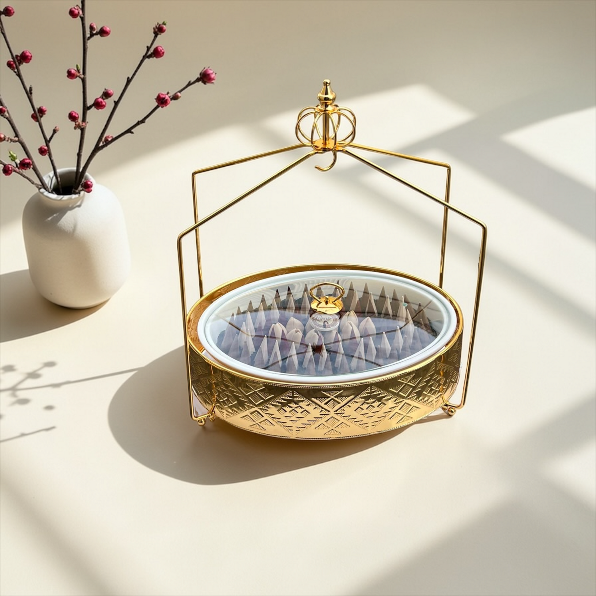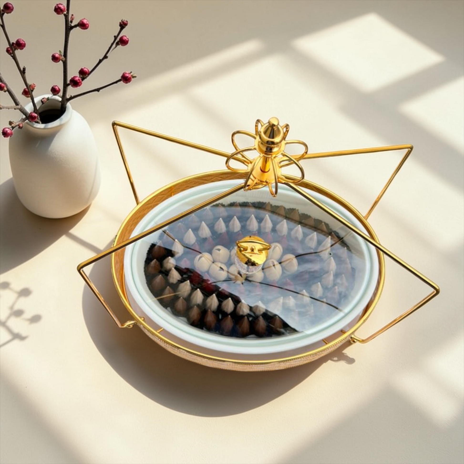 Eid Feuilletine Chocolate Cone Gold Platter | صحن ذهبي فاخر مع شوكليت الكون بالفياتين بثيم العيد