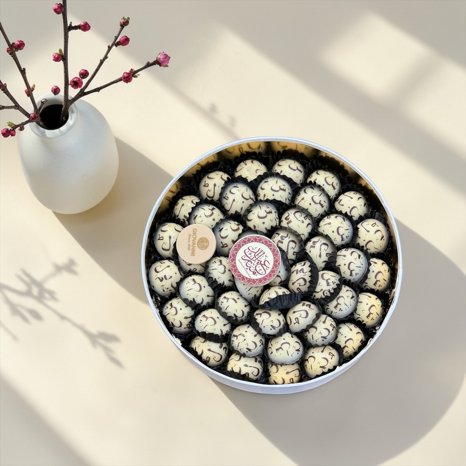 • Arabic letter-shaped chocolates Assorted premium chocolate fillings
