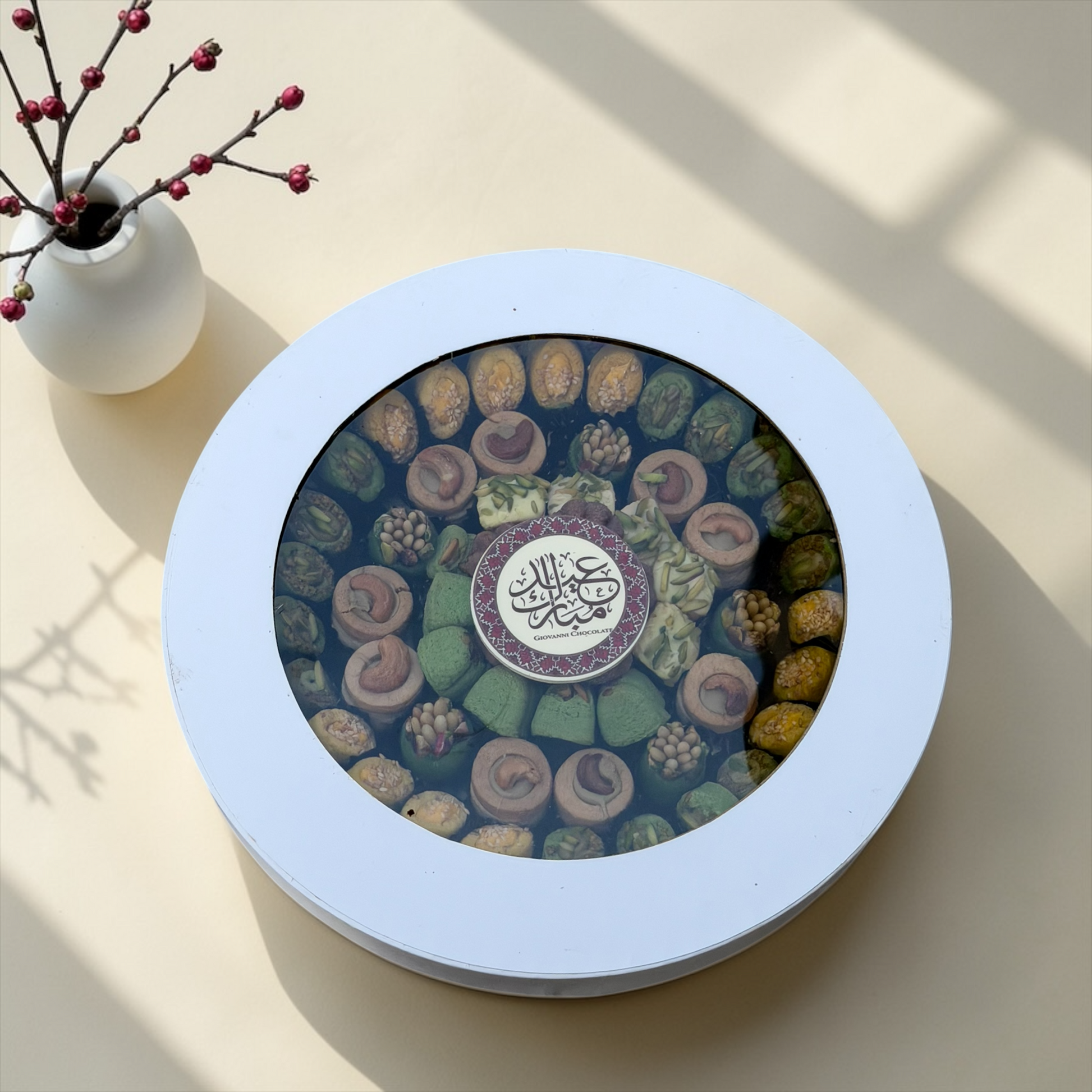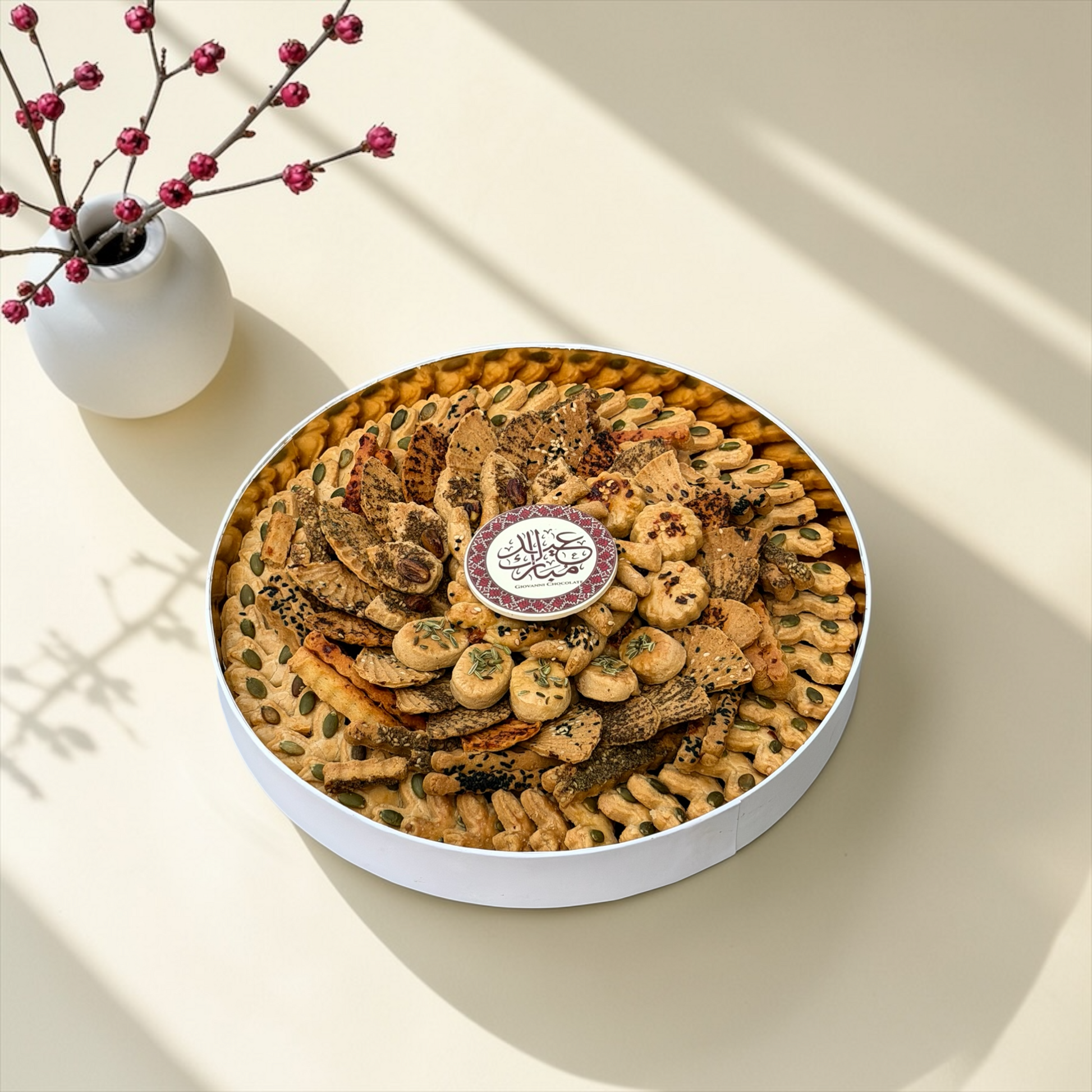This elegant selection offers a balanced combination of sweet and savory treats, making it perfect for premium gifting and refined hospitality. The chocolate box can be replaced with other available chocolate varieties.