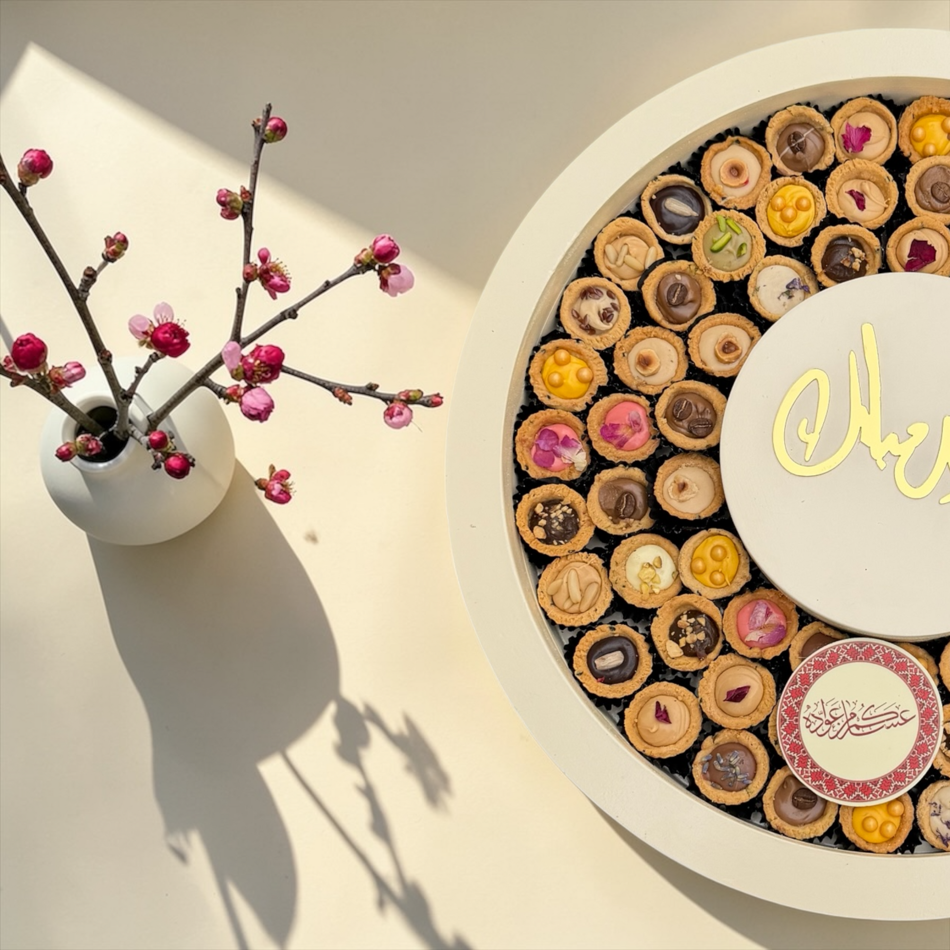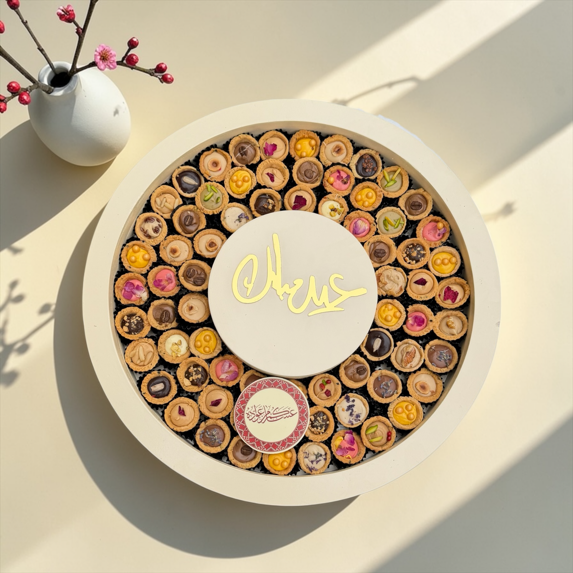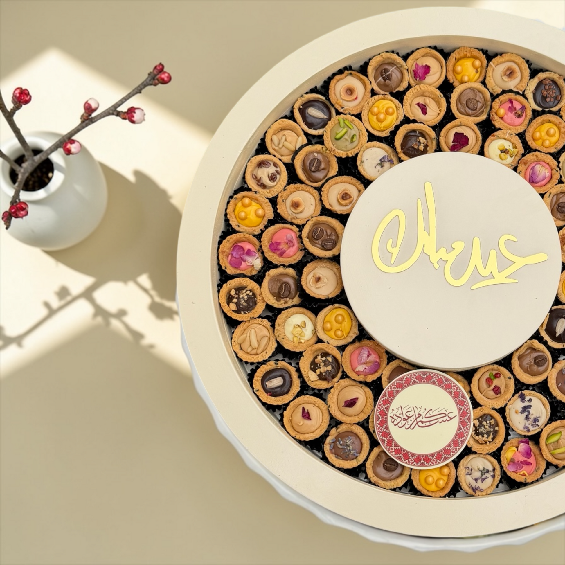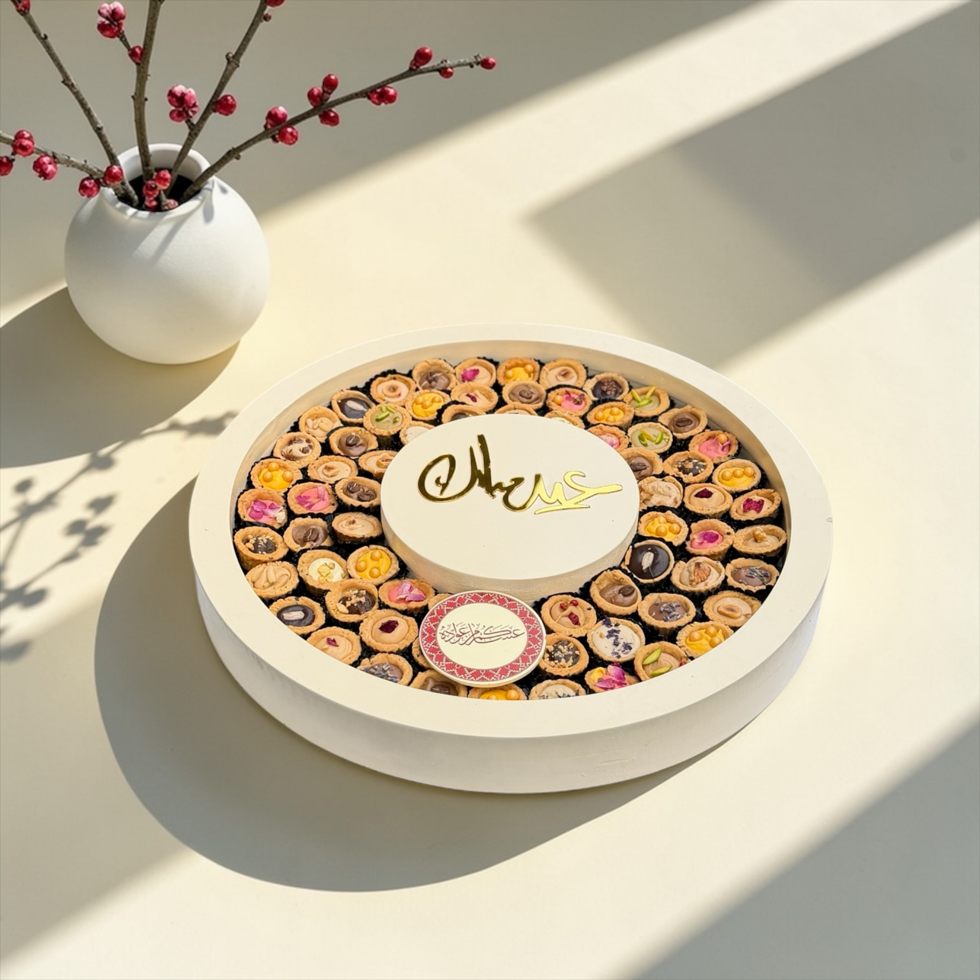 تم ترتيب هذه التشكيلة في صحن أكريليك فاخر مستوحى من تريند العيد ليكون خيارًا مميزًا للهدايا الفاخرة وضيافة المناسبات.