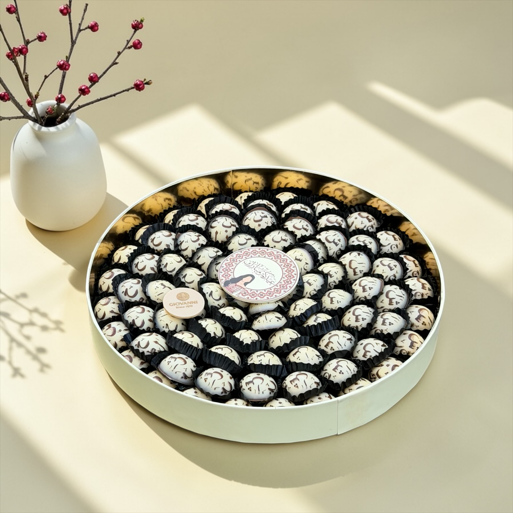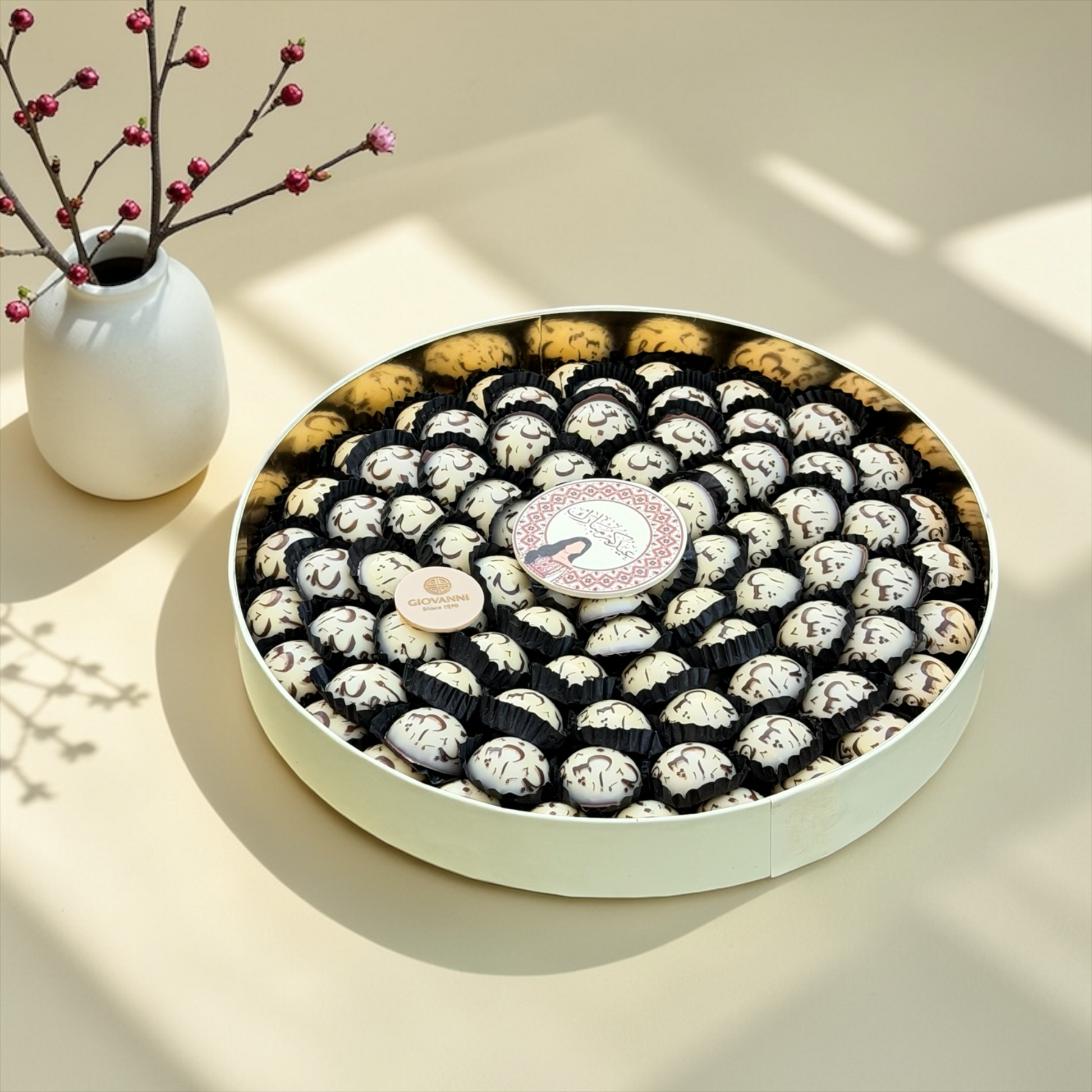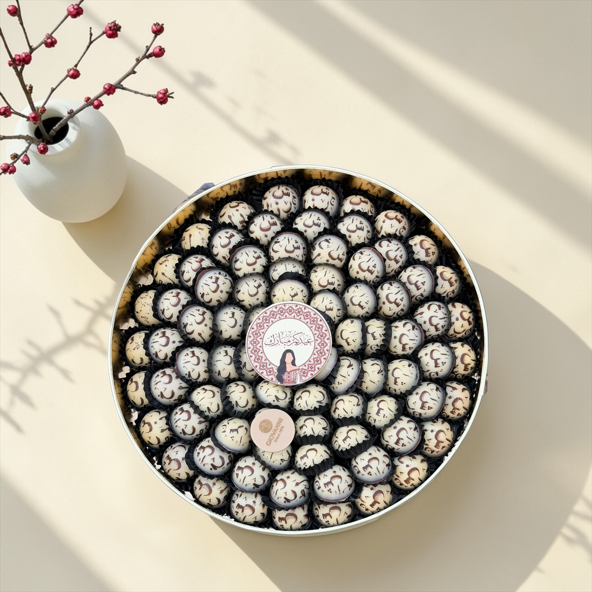 يحتوي على: شوكليت على شكل حروف عربية حشوات شوكليت متنوعة • ضيافة العيد الهدايا الفاخرة المناسبات والتجمعات • مصنوعة من شوكليت بلجيكي فاخر • تقديم فاخر مناسب للهدايا