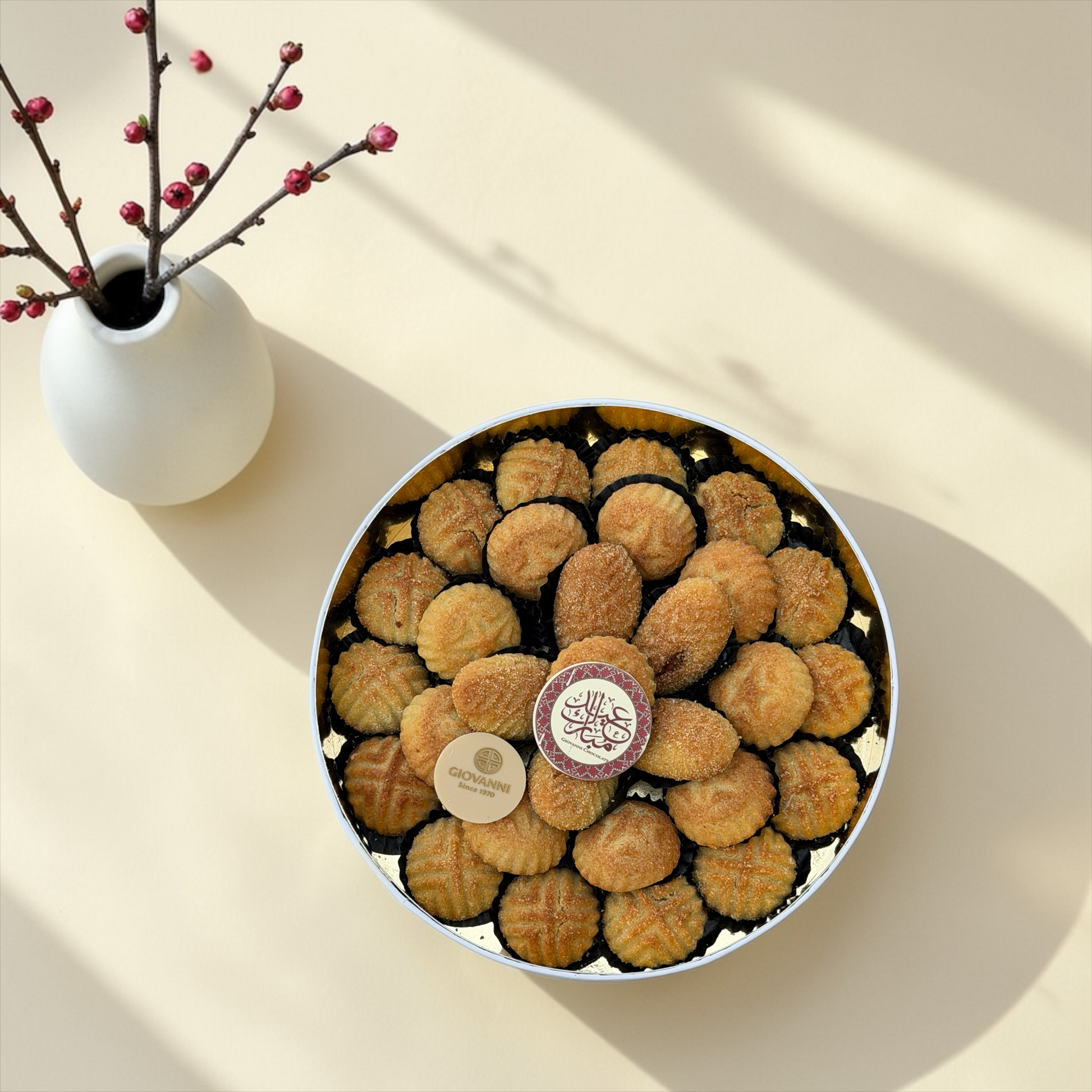 يحتوي على: معمول لبناني بالسميد والسمن البلدي • ضيافة العيد طاولات الحلويات التقليدية الهدايا والزيارات • مصنوعة من شوكليت بلجيكي فاخر • تقديم فاخر مناسب للهدايا