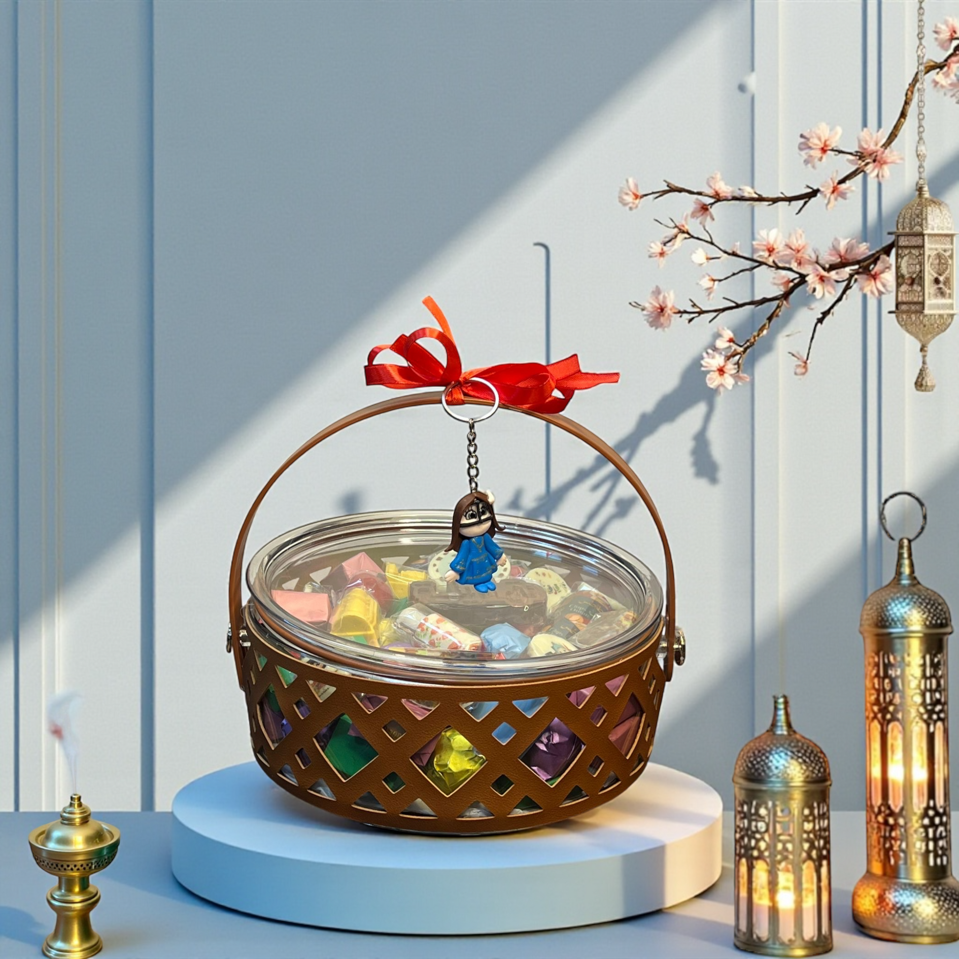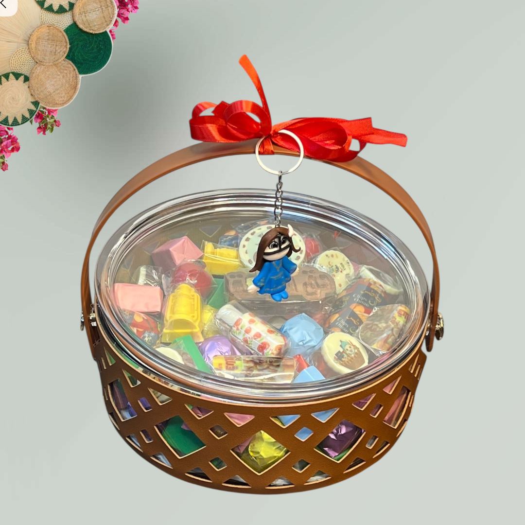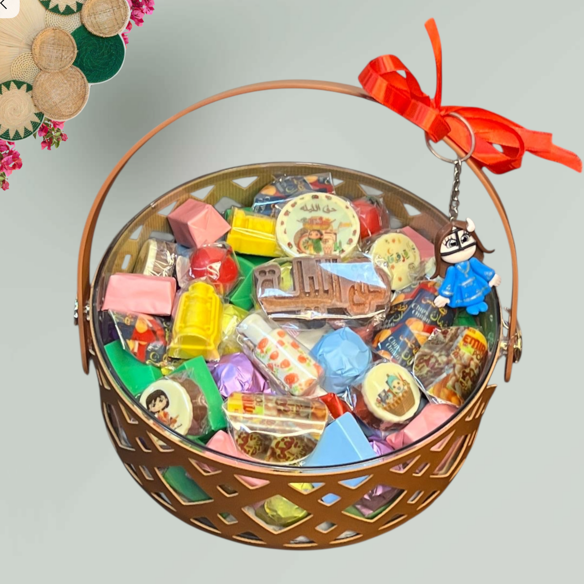الوزن التقريبي: 900 جرام • العدد التقريبي: حوالي 60قطعة • النوع: شوكولاتة بلجيكية فاخرة • التغليف: مزيج من شوكولاتة مغلّفة بالسولفان وشوكولاتة مكشوفة